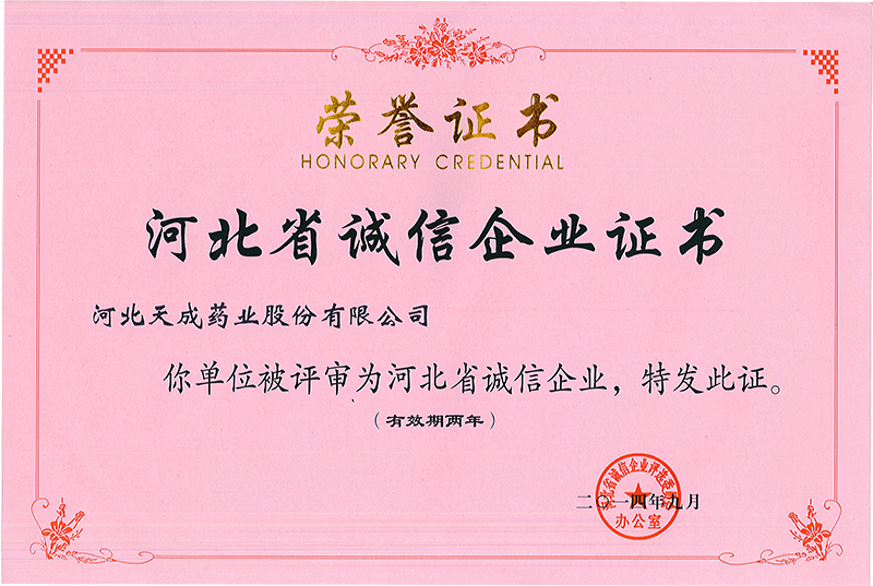 天成藥業(yè)被評為誠信企業(yè)