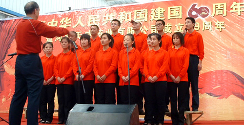 2009年9月29日是我公司建廠(chǎng)39周年改制11周年的日子,又恰逢新中國成立60周年,和著(zhù)全國人民大慶的節拍,我公司于2009年9月30日舉行了隆重的慶典活動(dòng)。大會(huì )由公司副總王顥主持,公司副總田長(cháng)友在會(huì )上做了2009年1-9月份工作匯報,副總徐福河宣讀了2009年度工資調整方案,之后公司董事長(cháng)兼總經(jīng)理王振剛做了關(guān)于企業(yè)文化的重要報告。領(lǐng)導講話(huà)結束后,舉行了“唱紅歌”大合唱歌詠比賽,全公司共有十九個(gè)代表隊參加了比賽。最后,在全體干部員工“歌唱祖國”的歌聲中,慶典活動(dòng)圓滿(mǎn)結束。該活動(dòng)極大地振奮了干部員工的精神,弘揚了企業(yè)文化,為公司今后的發(fā)展指明了方向。